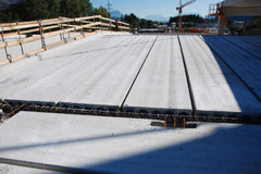 Vorgespannte Elemendecke mit glatter Oberfläche. Sie dient als verlorene Schalung, dadurch kann auf eine Unterstützung beim Betonieren des Restquerschnitts verzichtet werden.