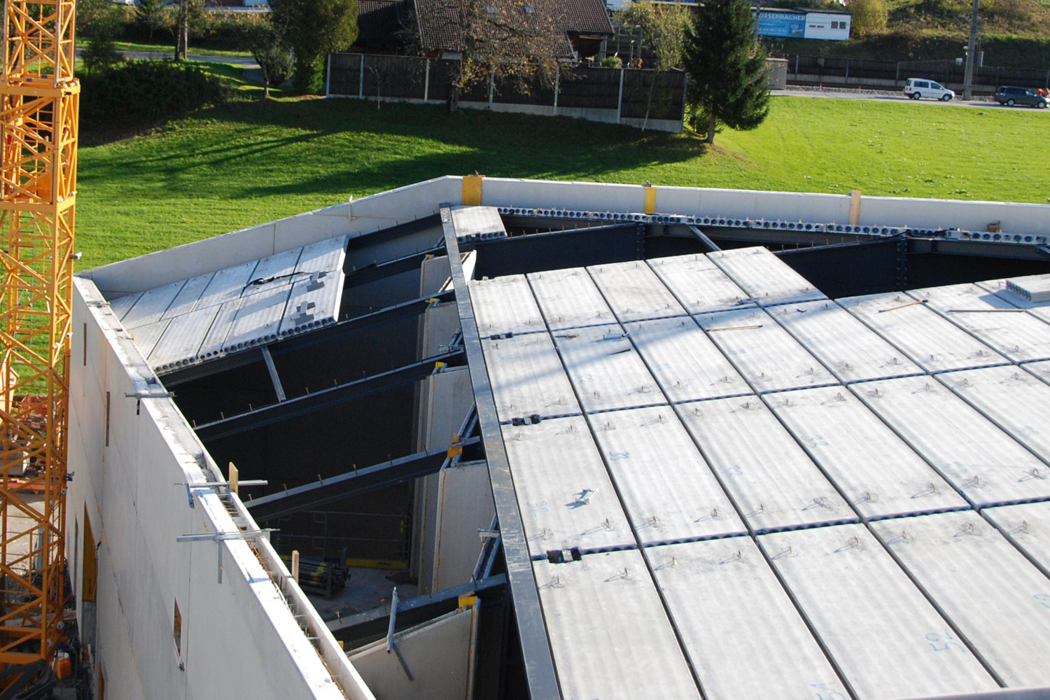 Etwa 2000 m² Dachfläche mit Hohlplatte realisiert.